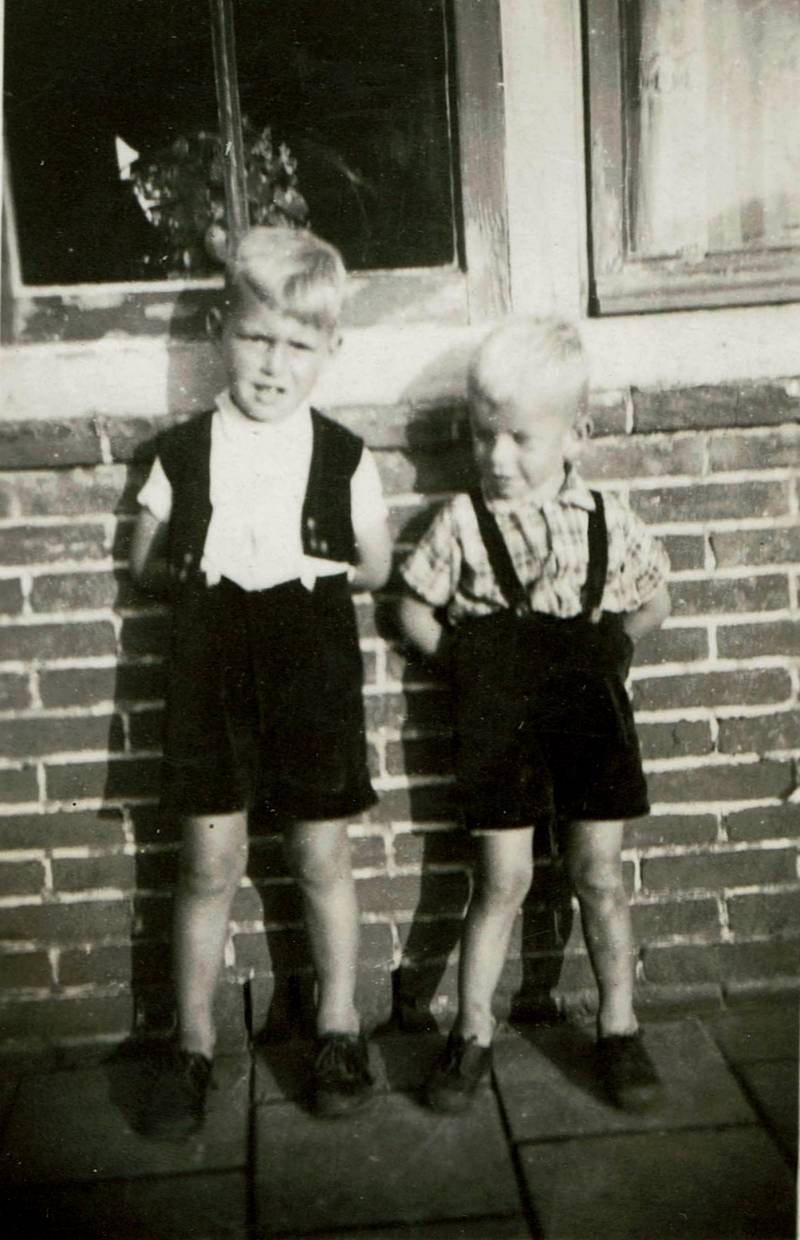 Gerard en Bertus Hagels voor ons huis in de Schipholtstraat 155. Archief Marloes Japink.