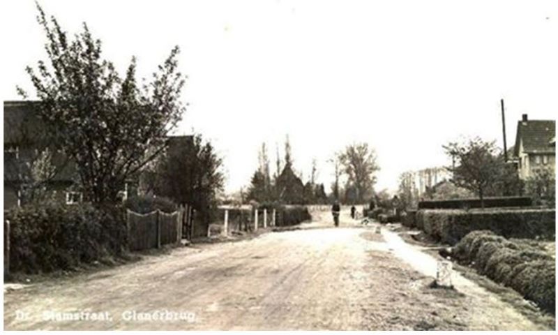 Verlengde Dr. Stamstraat nabij de Schipholtstraat. Het eerste huisje werd bewoond door de familie Bouwhuis.In onze tijd, vlak na de oorlog, had de familie Bouwhuis een prieeltje achter het huis staan. Roelof de Ruiter en ik gingen er wel eens naar toe. De zoon Alex Bouwhuis had daar veel opgestopte vogels in staan. Ook diverse soorten opgestopte vlinders en kevertjes.We gingen ook wel eens met Alex en nog wat andere jongens uit de buurt het Aamsveen in. Dat waren Klaas Lof, Wieger Rozeboom, Jan Wobben en Roelof en ik. In het Aamsveen werd toen nog turf gestoken. Hele stapels stonden er toen te drogen.