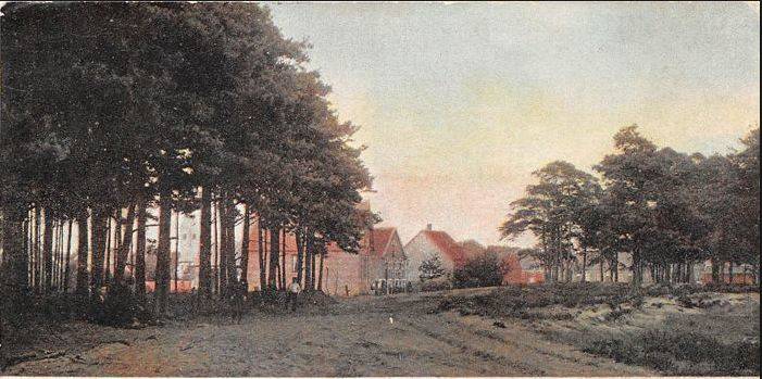 Schitterende ingekleurde foto van het begin van de Schipholtstraat. Rechts is later de Gereformeerde kerk gebouwd. Links, waar de bomen staan was later het weiland van de groenteboer Jonker. Later kwam daar de Finse openbare school te staan.
