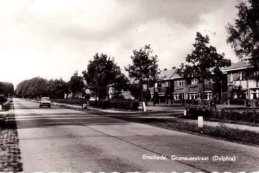 Oude Rijksweg van Enschede naar Glanerbrug. Tussen Enschede en Dolphia stond vroeger, niet op deze foto zichtbaar, een boerderij 'De Knibbelboer.' Wie kan daar meer over vertellen? Klik op: Stuur mij een bericht.
