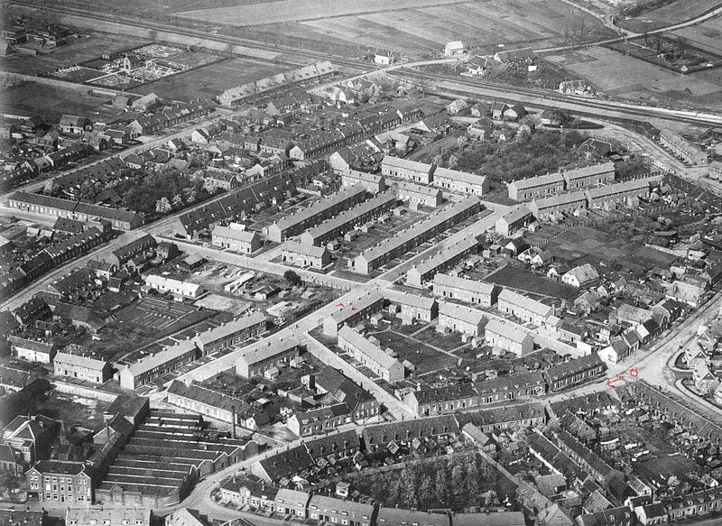 Plattegrond van het toendertijd Tiel Oost. Omgeving Hoveniersweg - Hoogestraat - Hoveniersweg.