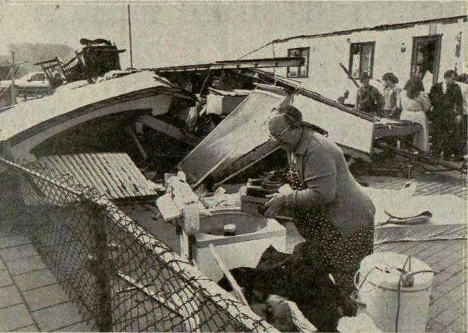 In september 1987 ontstond er een wolkbreuk boven Tiel. Op de ANP foto op een woonwagenkamp in Tiel bekijkt een vrouw wat er nog over is van haar huisraad.