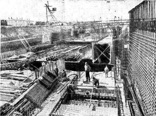De Prins Bernardsluis in Tiel in aanbouw. Het is 1949. Het zal een van de grootste binnenvaartsluizen in Europa worden Nederlanders zijn niet alleen de beste bruggenbouwers, maar ook op het bouwen van sluizen en tunnels staan ze hun mannetje
