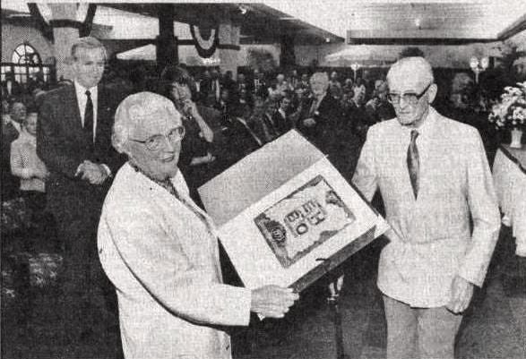Dit is een foto uit 17 - mei 1993. Prinses Juliana woonde als Beschermvrouwe het honderd jarige jubileum bij van de Koninklijke Nederlandse Vereniging van Eerste Hulp Bij Ongelukken. Bij deze gelegenheid werd de prinses een herinneringsgravure aangeboden aan het oudste E. H. B. O. lid dhr J. W. Stassen.