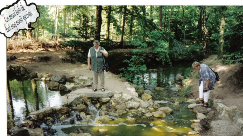 ‘Apenheul,’ klonk het al gauw her en der in de bus. ‘Julianatoren,’ durfde een enkeling te zeggen. Geen van tweeën werd het. En paleis ‘Het Loo.’ daar waren we al eens geweest. Nee het werd park ‘Berg en Bos,’ waarin ook Apenheul is gevestigd. In een restaurantje kregen we een heerlijke kop koffie met een enorm stuk gebak voorgeschoteld.