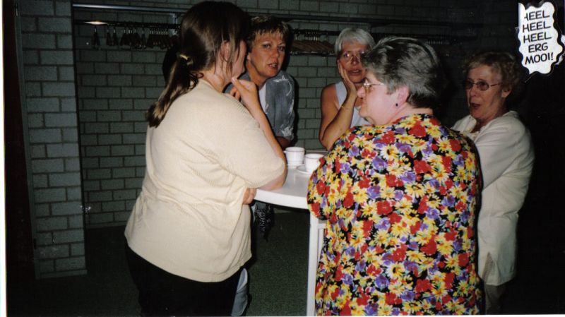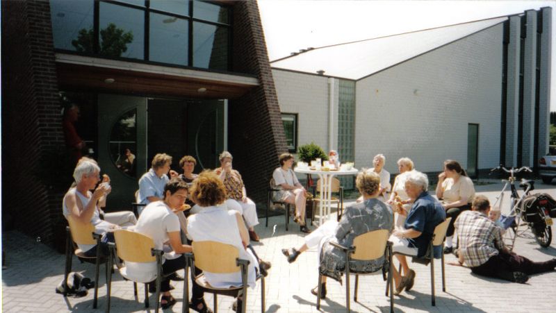 Zusterhulpen gereformeerde kerk vrijgemaakt in Tiel een dagje uit naar het Bijbels Openluchtmuseum. 1999.